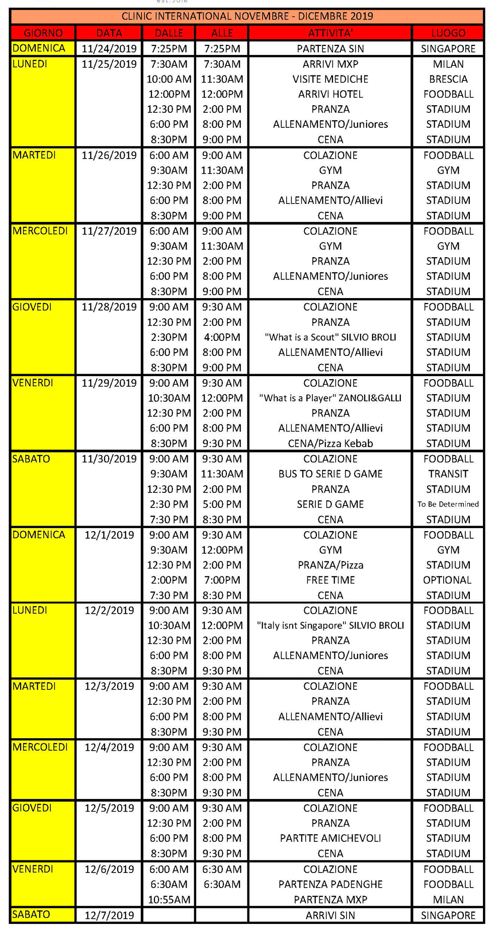 Players will be very busy from time of arrival until time of departure. If players have been assigned work by their academic school, it is expected that they will find time to complete it. Italian breakfast, lunch and dinner is included at the hotel/facility. Special diets are taken into consideration.